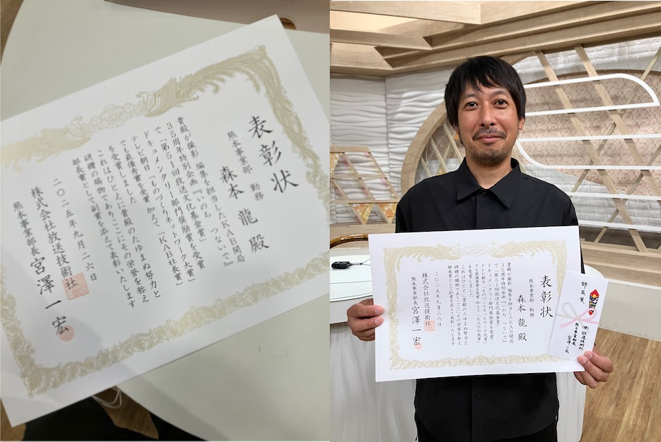 番組制作は、私たちカメラマンや記者だけでは成り立ちません。この放送文化基金賞奨励賞は、関わった全ての人の日頃の協力の賜物です。