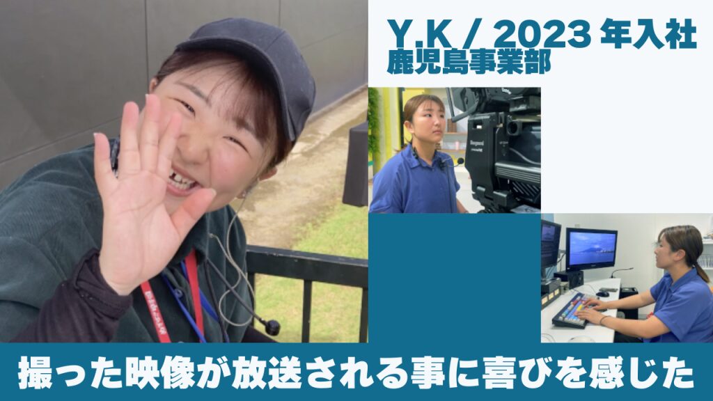 1つ目は、「コミュニケーション」です。私は京都から鹿児島に来ました。そのため最初は方言も聞き取ることがあまりできず、知り合いも鹿児島に何人かしかおらず不安が募りました。その不安を少しでも早くなくしていくために、色んな方々とコミュニケーションを自分から積極的にしていき、私を社内の方々に知ってもらおうと思いました。0からの知識で先輩方に教えてもらう為、分からない事をはっきりと聞くことができる関係性や方言に慣れる事、相談事をすることができる関係性などを自ら築いていこうと考えました。コミュニケーションは人間関係だけではなく、仕事をしていく上でも重要だと思います。特にこの業界に入って番組や映像の趣旨をとらえて撮影するなどコミュニケーションが無いと成り立たない仕事であると痛感しました。2つ目は、「挑戦心」です。失敗を恐れて何も動かない事より、挑戦をしてみるという事を念頭に置いて仕事をしています。